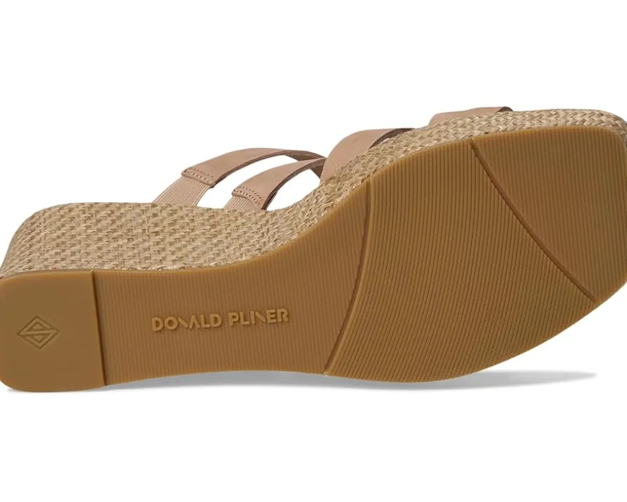 - The Donald Pliner® Anamari sandal gives you effortless height, featuring a brushed metallic Laser-cut, multi-strapped leather upper atop a tall wedge heel. These open round-toe sandals come with a leather lining. The leather insole with memory foam sock lining and stretch gores adds extra comfort to this slip-on style, while a toe ring and a rubber outsole keep it stable.