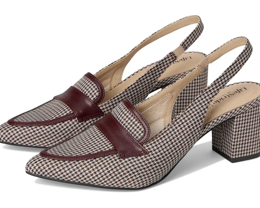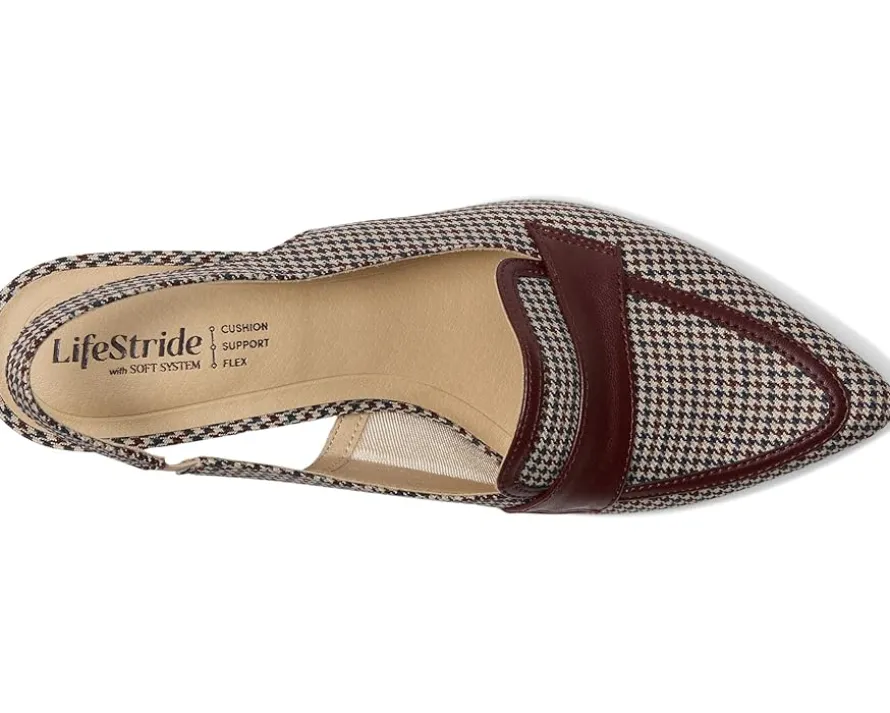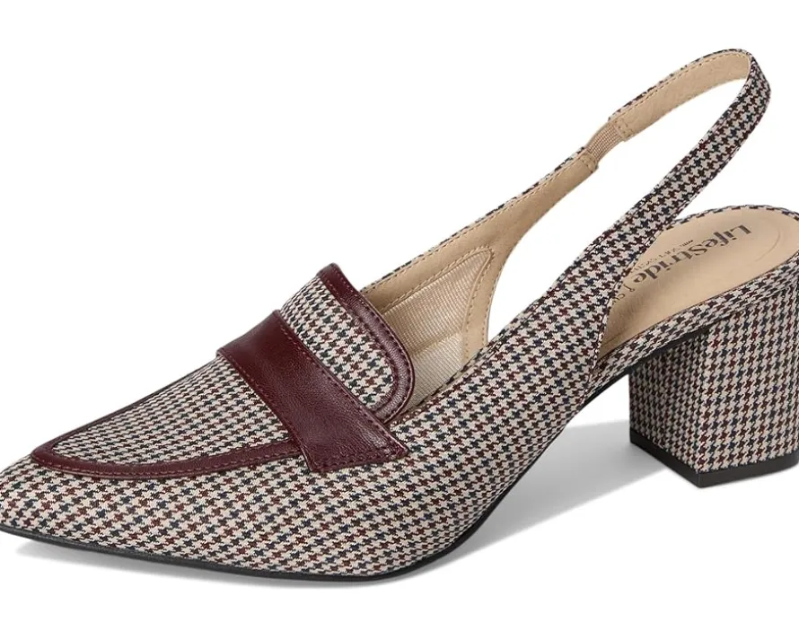 - Polish that powers your day: LifeStride® Angel delivers timeless elegance and a comfortable feel that keeps up with you. These slingback pumps are designed to look perfectly tailored while feeling effortlessly wearable, making them your go-to for the office and beyond. Crafted with a sleek polyester upper and finished with a chic strap detail, the softly pointed toe adds a refined edge to any outfit. The slingback strap features built-in stretch for a secure yet flexible fit, while the block heel offers stability without sacrificing style. Inside, the faux leather lining and insole pair with LifeStride’s trusted Soft System® comfort technology, giving you unmatched cushioning, support, and flexibility in every step. A synthetic rubber outsole with reliable traction ensures you stay grounded and confident wherever the day takes you.