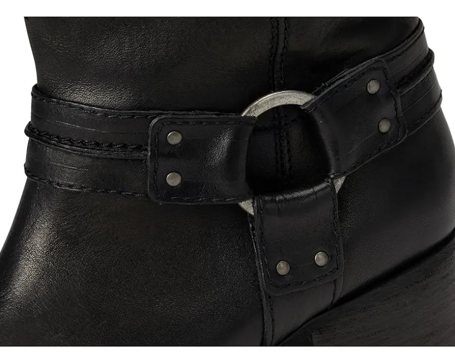 - Step in style choosing these Anok Harness Moto Boots from Free People™, featuring a shiny finish, a metal harness detail, and a stacked heel for a bold, heritage-inspired statement pair. Made from rich leather upper with a shiny finish, these boots feature a round toe design for an effortless look.