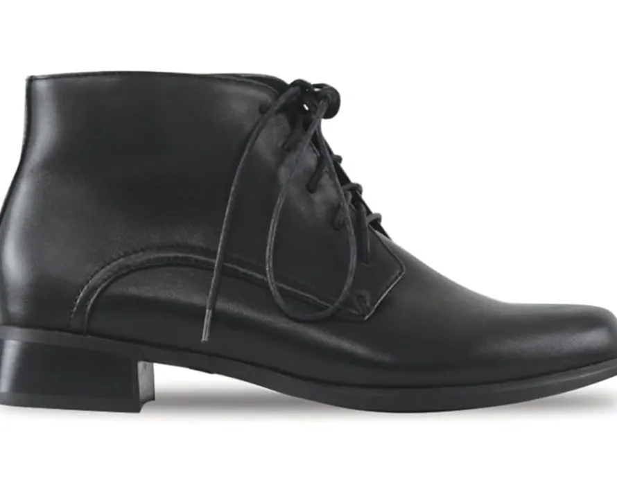 - Give your outfit an added touch of style and sophistication wearing Munro® Antonia Boots crafted with a leather upper, fabric lining, and removable contoured polyurethane footbed for arch support and comfort. The boots are designedfor a tailored look with classic fit and feature a round toe shape, high stacked block heel, lace-up detailing with inside zip closure for convenience.