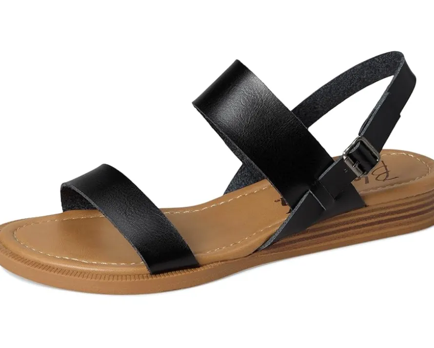 - Make the Blowfish® Malibu Arcadia slip-on sandal yours! It features a faux leather upper with buckle adjustable heel strap for a comfortable fit and a low wedge heel for just a hint of height.