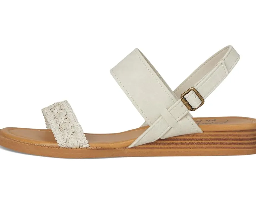 - Make the Blowfish® Malibu Arcadia slip-on sandal yours! It features a faux leather upper with buckle adjustable heel strap for a comfortable fit and a low wedge heel for just a hint of height.
