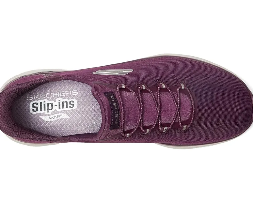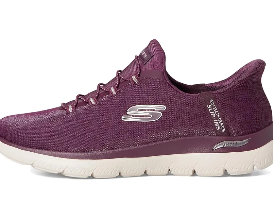 - Enjoy an easy-on brand favorite, now with our famous arch support, wearing SKECHERS® Arch Fit® Summits Hands Free Slip-Ins®. Designed with our exclusive Heel Pillow®, this vegan slip-on has been granted the APMA Seal of Acceptance and features a leopard print mesh upper with fixed stretch laces and a removable air-cooled Arch Fit® insole.
