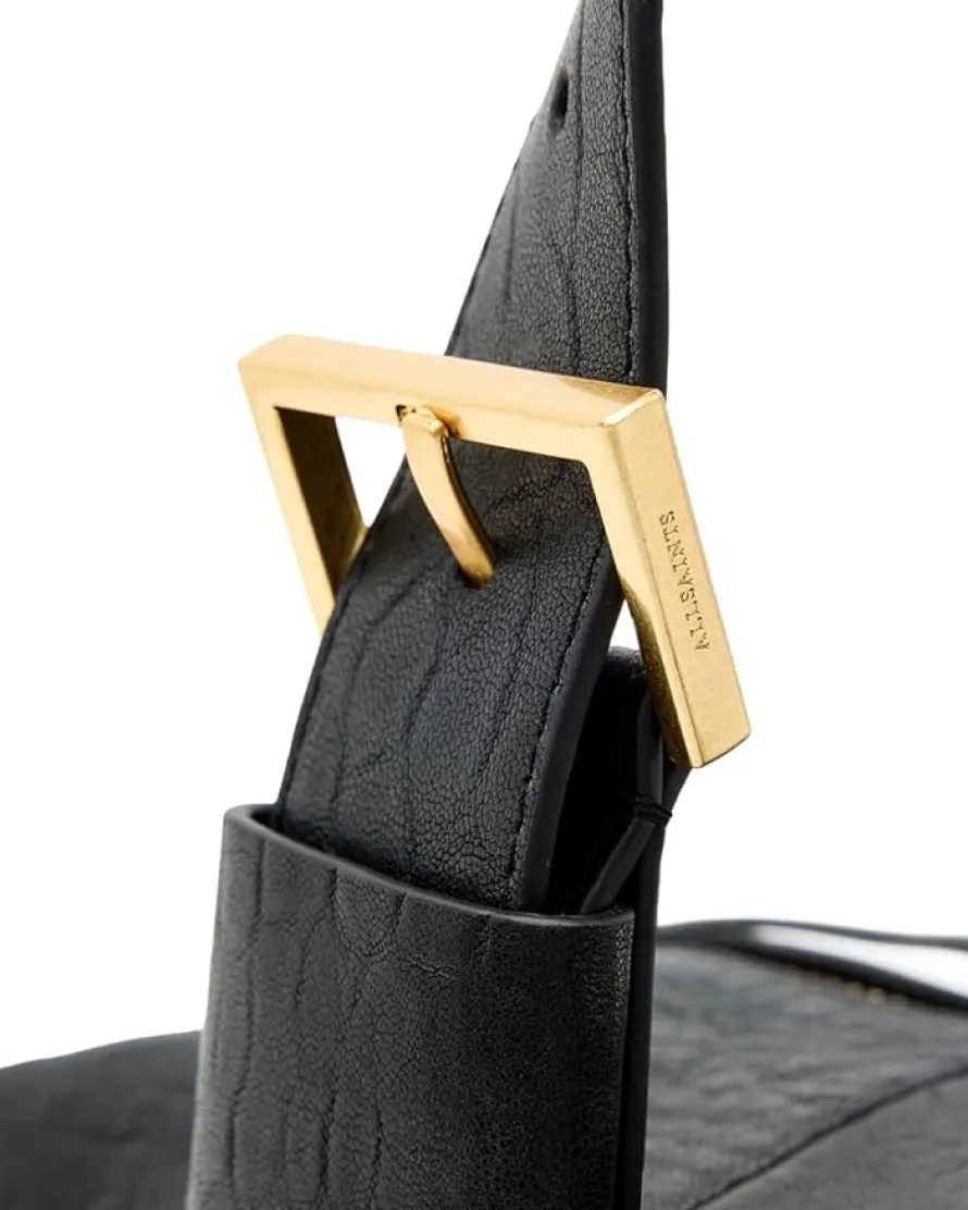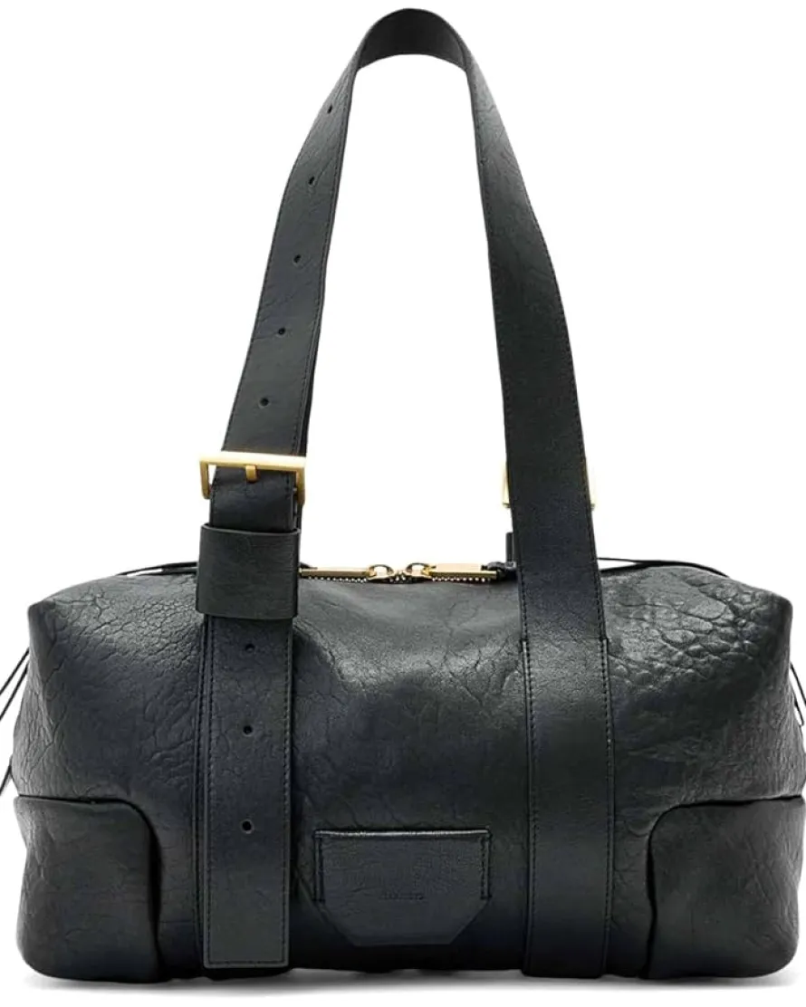 - Complement your chic while keeping your essentials organized in the AllSaints™ Ares Grain Shoulder Bag. Crafted from leather, this duffle style bag offers a top zipper closure with interior pocket, grab handles, and adjustable shoulder straps.