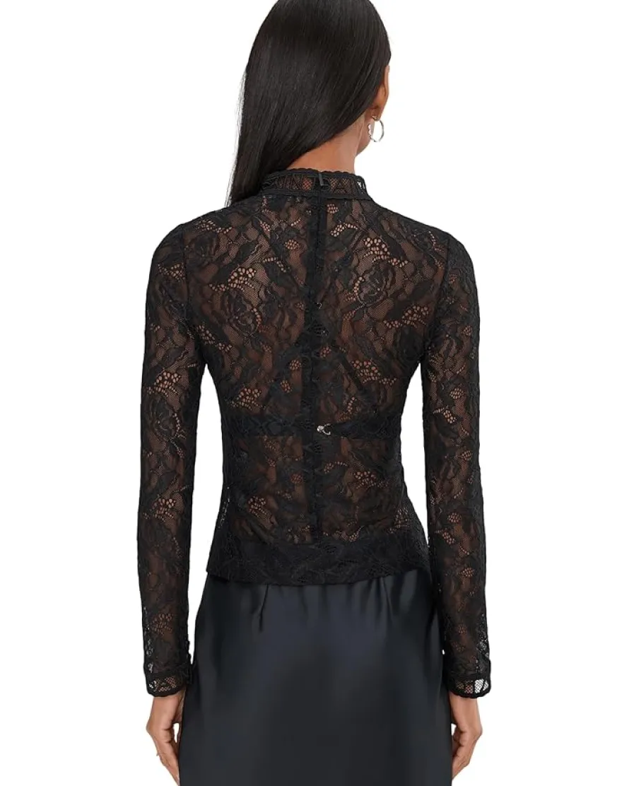 - Love fashion that speaks volumes with subtle detail, the Aria Lace Top by AllSaints™ is your new go-to for creating looks that feel just as good as they look. Designed for modern elegance with a touch of edge, this stunning piece blends timeless lace with a contemporary silhouette. Featuring a classic crew neck and long sleeves, it strikes the perfect balance between coverage and allure, making it a versatile staple for any season. The regular fit flatters without restricting, while the easy pull-on style keeps your look polished yet fuss-free.