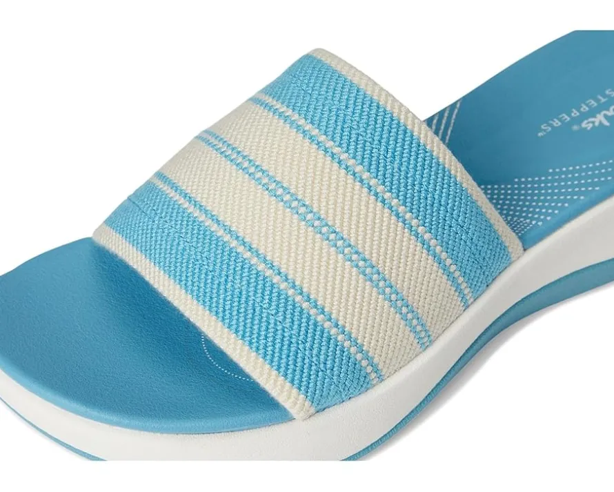 - Part of Clarks Cloudsteppers™ collection, Clarks™ Arla Hollis is all about lightness and feeling free – perfect for everything from relaxing in the garden to coastal escapes. Keeping comfort at its core, this breezy silhouette keeps steps feeling effortless thanks to a Cushion Soft™ footbed, while the curved design and stripy upper complement your foot perfectly. Soft textile upper, cushion Soft™ foam footbed offers lasting comfort. Slip-on for easy on/off, and lightweight ethylene vinyl acetate midsole supports and cushions your foot.