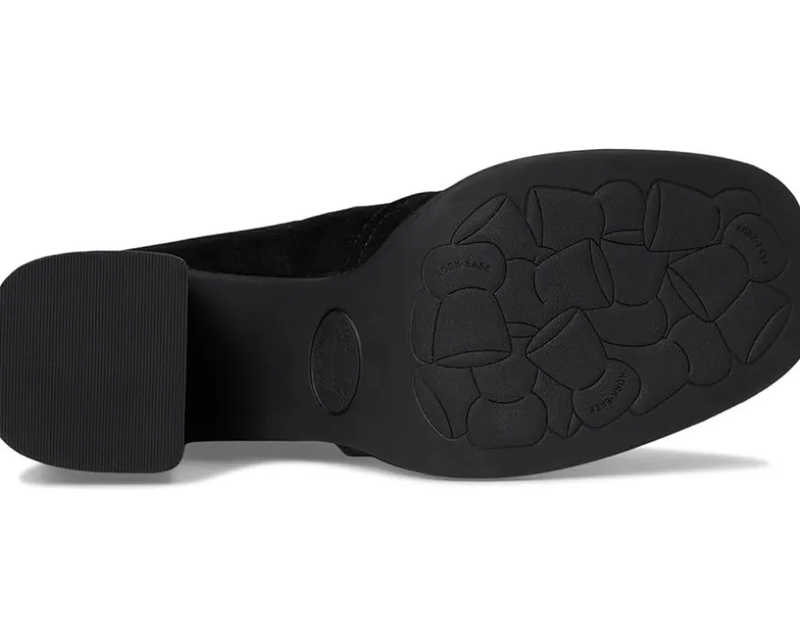 - High-traction, lightweight rubber outsole with leawood-wrapped stacked block heels.