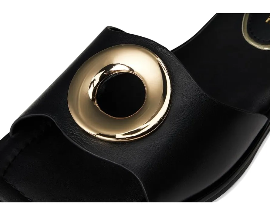 - Kenneth Cole New York® Asher sandals are perfect for those who want a touch of sophistication in every step. Crafted from leather upper, lining, and insole, this pair of sandals features open square toe, metal ring detailing on the vamp, slip-on style, and brand detailing on the footbed.