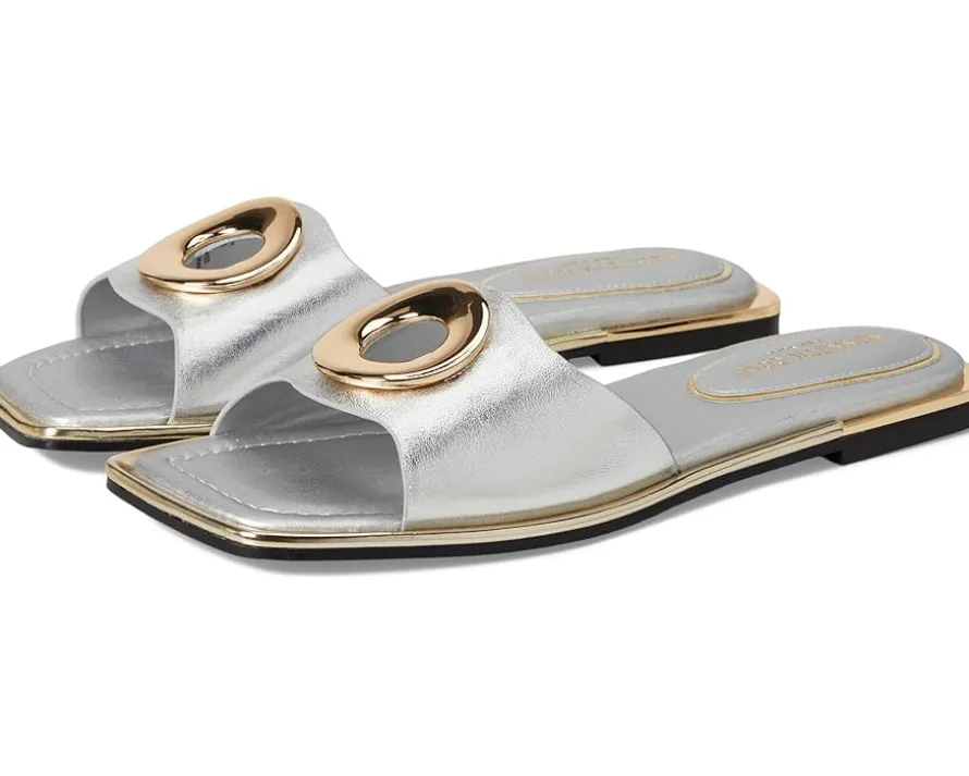 - Kenneth Cole New York® Asher sandals are perfect for those who want a touch of sophistication in every step. Crafted from leather upper, lining, and insole, this pair of sandals features open square toe, metal ring detailing on the vamp, slip-on style, and brand detailing on the footbed.