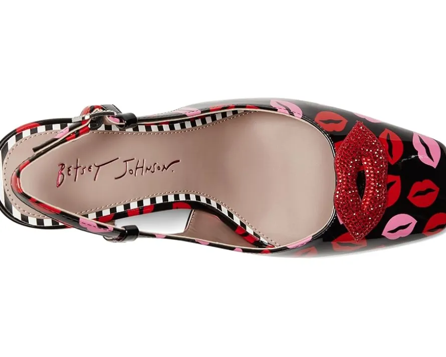 - Add a bold touch to your look with the Blue™ by Betsey Johnson Ashhley pumps, featuring a fun allover lip print. These stylish heels offer a perfect blend of comfort and flair, making them ideal for any occasion. These heeled pumps are made of a faux leather insole and lining. The polyurethane upper has a slingback strap for added support. Step out in style and let your shoes do the talking.