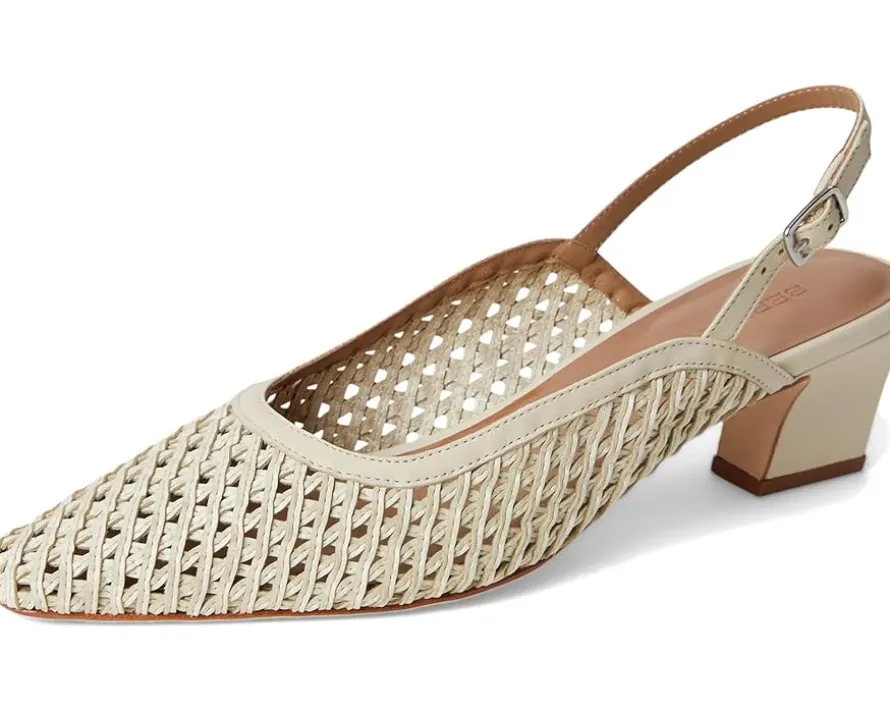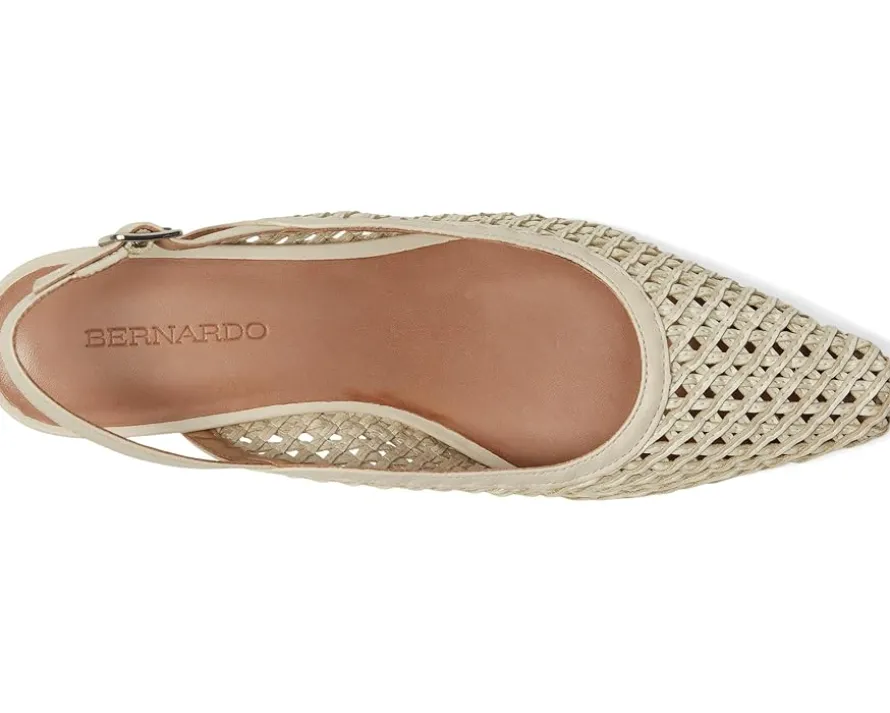 - Expand your horizons. This inventive Bernardo® Athena slingback takes a familiar design to a new place, uniting a handcrafted woven upper with modern curved lines. Adjustable buckle straps and block heels ensure a comfortable journey, no matter where you’re going.