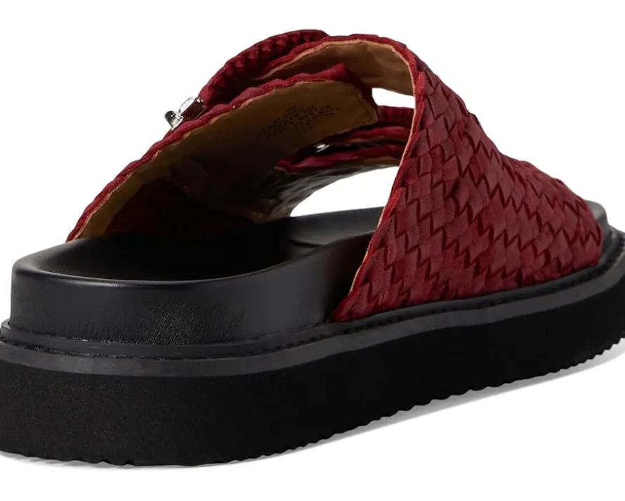- Add glam to your casual look wearing Marc Fisher LTD™ Auggie Sandals. These feature a woven detailing, slip-on design, and two buckled straps along with an open round toe shape. The sandals are crafted with a leather upper and man made lining.