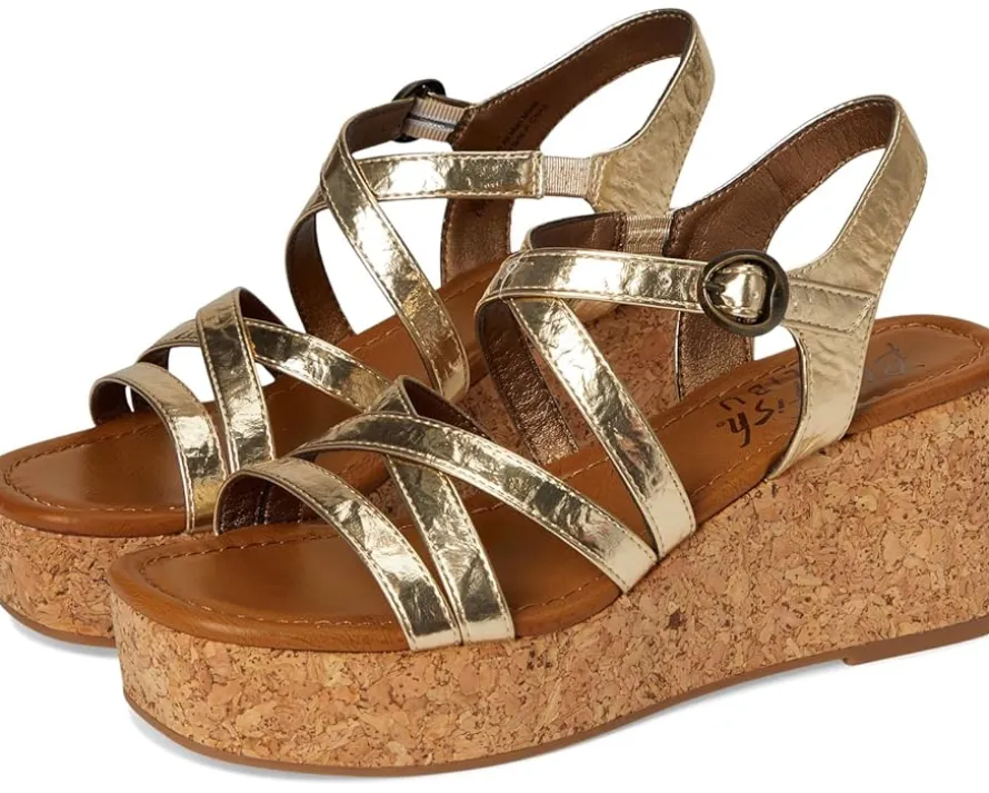 - Update your footwear collection by adding to it the stunning Blowfish® Malibu Aurora Heels. The strappy sandals feature a faux leather upper with a metal buckle closure, polyurethane lining, and a foam insole for lasting comfort. The cork wedge wrap heel adds to the style.