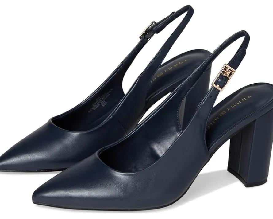 - From the desk to dinner, maintain your sophisticated style in the Tommy Hilfiger® Azalee 2 shoes. Crafted from an polyurethane upper, these shoes offer a pointed toe silhouette with an adjustable slingback buckle closure, polyester lining and a foam insole for all-day comfort.
