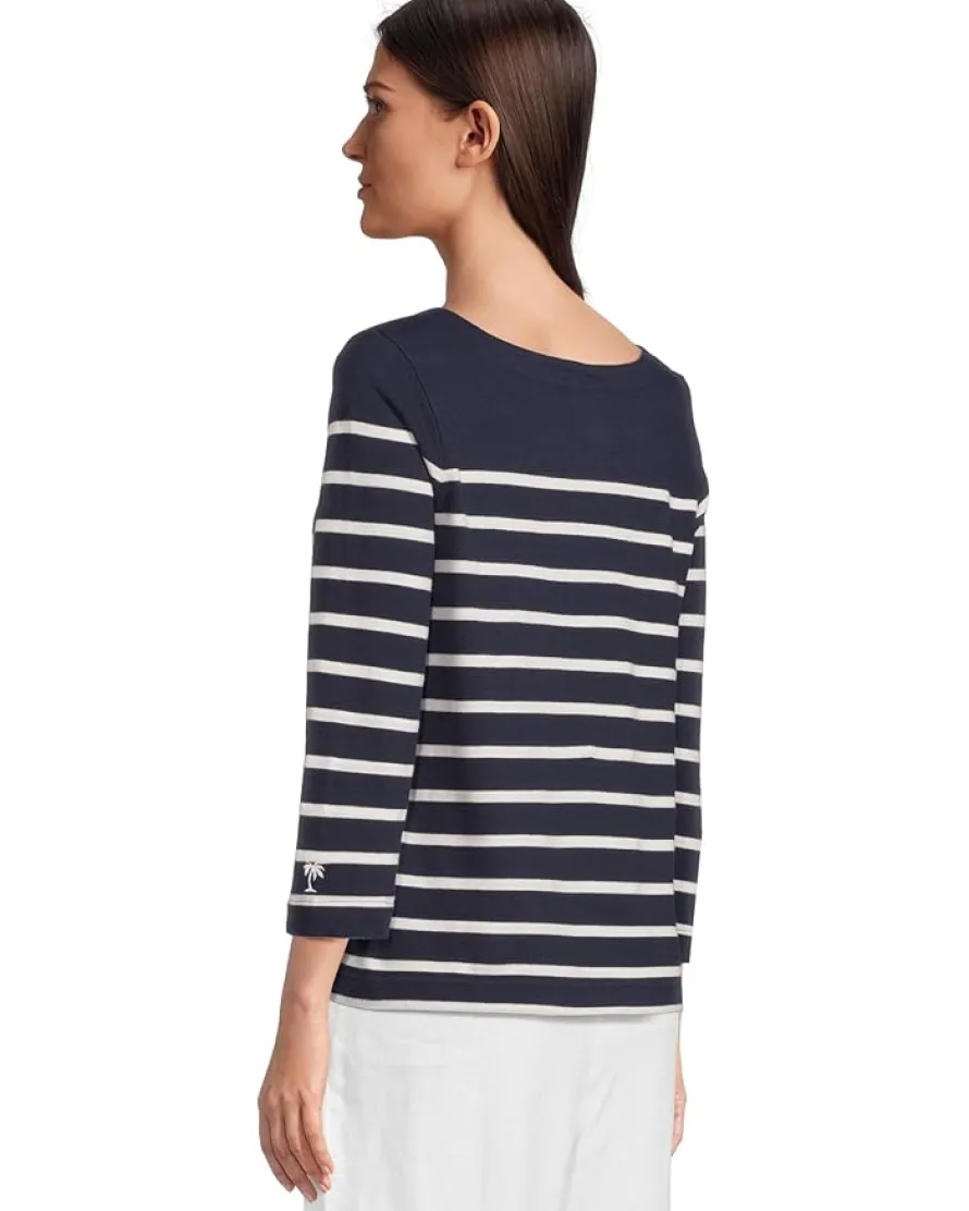 - The Tommy Bahama® Bahama Bliss Stripe 3/4 Sleeve Top features horizontal stripes, a boat neckline, and three-quarter sleeves for a flattering, easygoing silhouette. Lightweight and breathable, it’s perfect for layering or wearing solo.