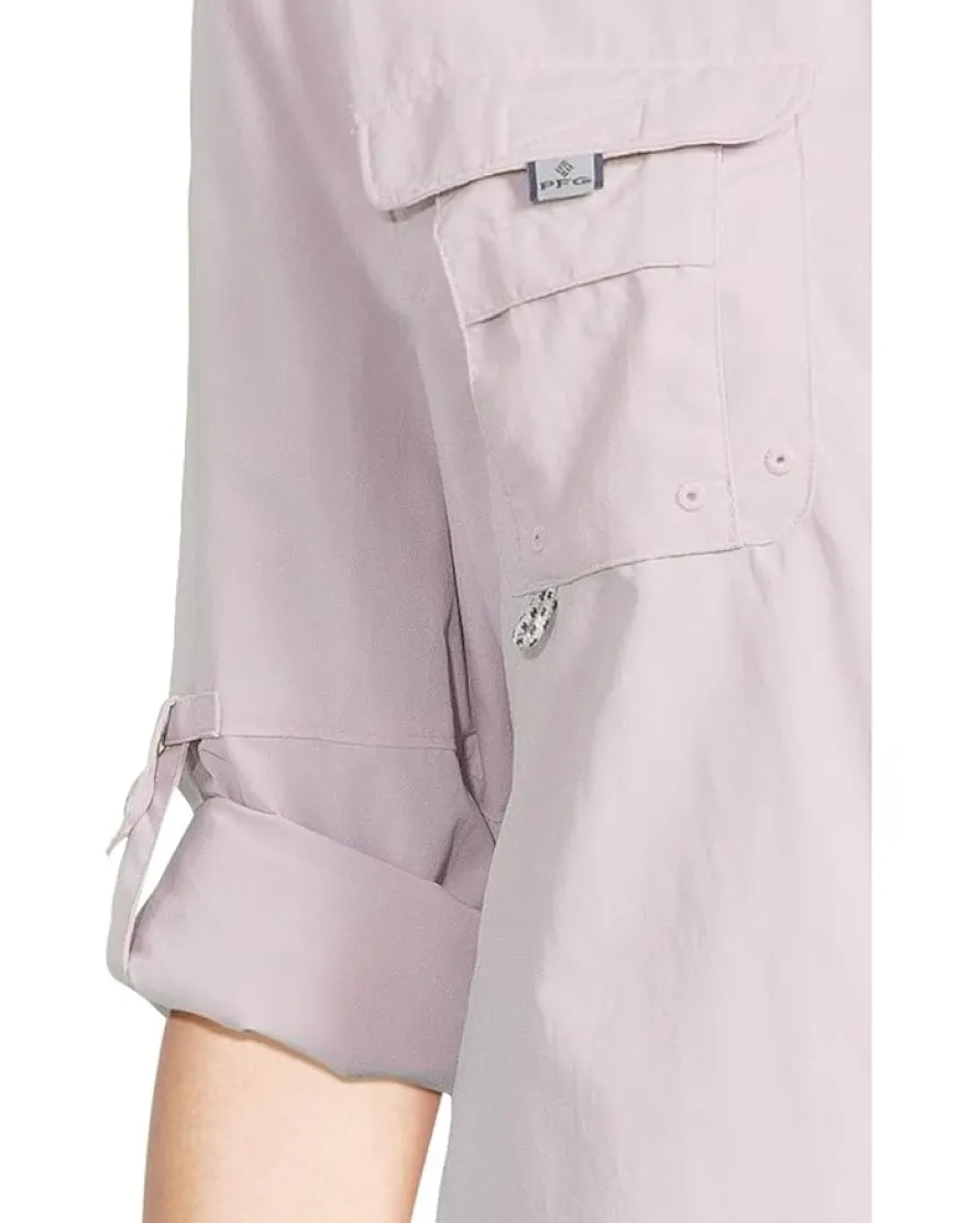 - Embrace the class wearing the Columbia® Bahama™ II Long Sleeve. Made from Omni-Shade Broad Spectrum UPF 50 sun protection fabric which is quick-drying. Featuring collared neckline, button front closure, long, rolled-up sleeves with button cuffs, two chest pockets, and curved hem.