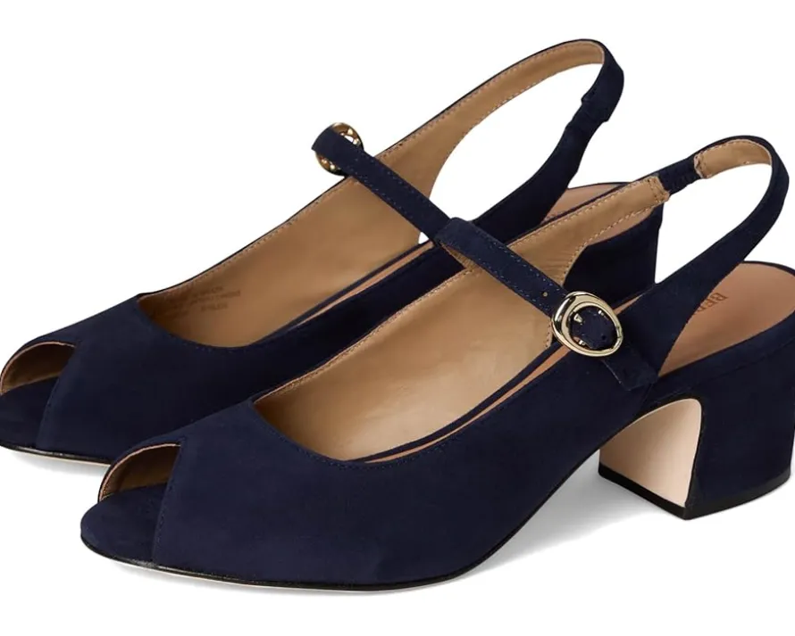 - Classical twists. A take on your trusty mary jane heel, Bernardo® Bailen offers a playful yet seductive peep-toe, providing all-day comfort with a touch of vintage-inspired sophistication. Crafted from suede upper, leather lining, and insole, this pair of sandals features block heel, low-top silhouette, buckle closure, and brand detailing on footbed.