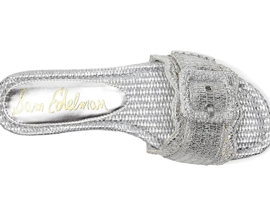 - The Sam Edelman® Bambi 6 slide sandals boast a raffia upper complemented by an oversized resin buckle. Play with proportion and pack a punch. Boasting an open, square toe silhouette, the slip-on flat features polyurethane lining and faux leather insole.