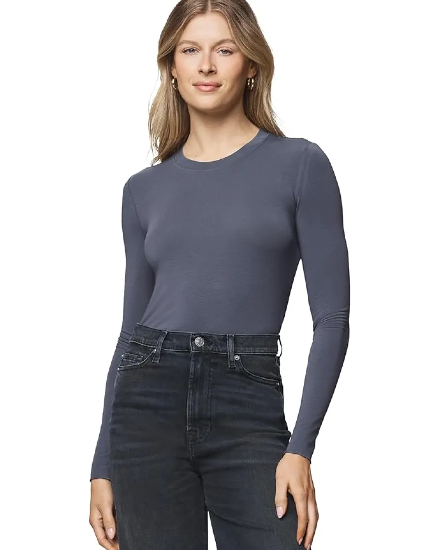 - Create a comfy and basic look by wearing the Splendid® Bamboo Long Sleeve Tee. The super-soft tee has a crew neckline, long sleeves, and a straight hemline. The stylish tee has a fitted silhouette and stitch details on the hem and cuffs.