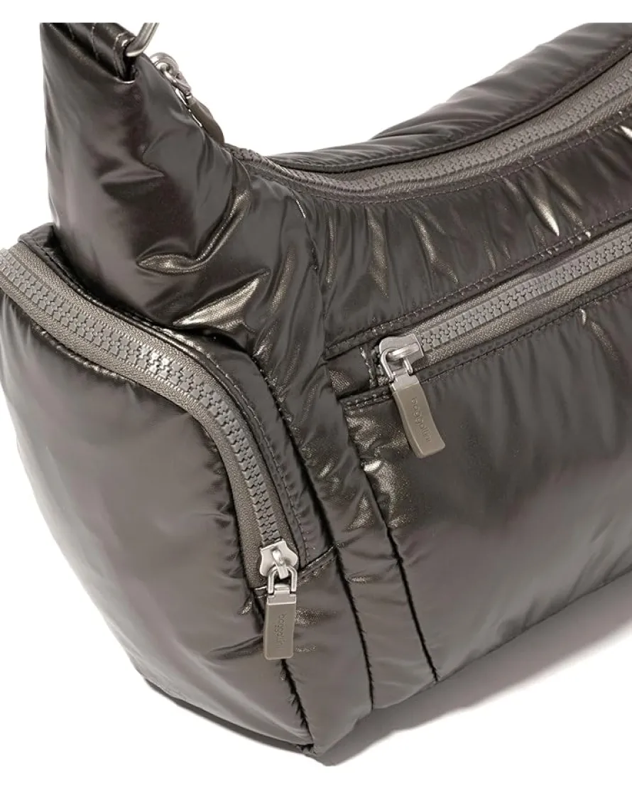 - Look great and feel good carrying Baggallini® Banana Sling. Crafted from sustainable nylon, it features one main compartment and four pockets for ultimate organization. The zippered closure ensures security, while the adjustable crossbody strap provides handsfree functionality. Perfectly sized between a mini crossbody and a backpack, this sleek, pillow-soft sling keeps your essentials close. Lightweight and airy, it’s designed for the modern, on-the-go lifestyle.
