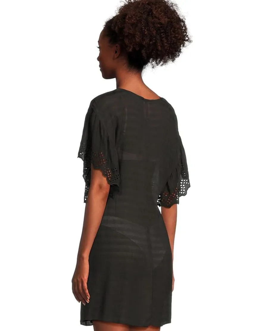 - Don the gorgeous BECCA by Rebecca Virtue® Barbados Tunic at your next beach vacation and amaze them all with its sexy plunge neckline and flutter sleeves that come with side slit openings. The pullover style tunic highlights embroidered eyelet scallop edges with a smocked elasticized front and an uneven hemline.
