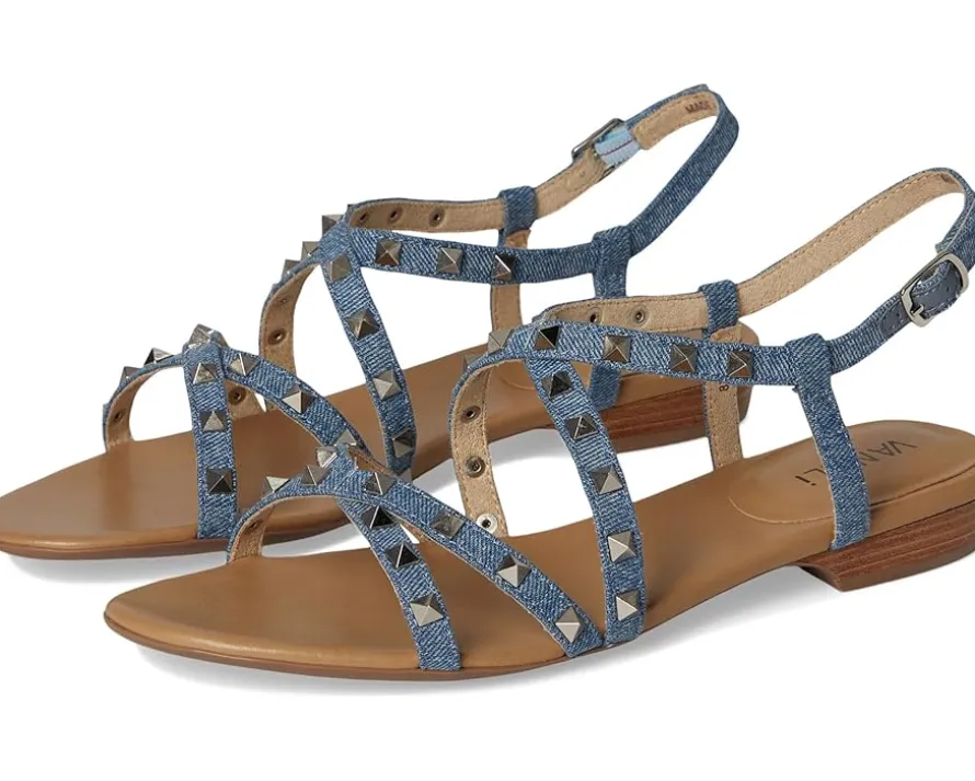 - Fashion meets comfort in the Vaneli® Basira Sandals, designed with a strappy leather upper and beautiful stud detailing. The leather lining and rubber insole improve the comfort, while the ankle strap & buckle closure ensure a secure fit. The solid block heel further elevates the look.