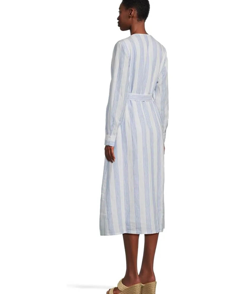 - Make weekend getaways more fun and stylish donning the Tommy Bahama® Bayside Isle Wrap Dress. The pull-on style dress features a V-neckline, long sleeves with barrel cuffs, an adjustable belt at the waist, and a wrap-style silhouette. It features a timeless striped print allover, two slit pocket for added functionality, and a sophisticated below-the-knee silhouette.