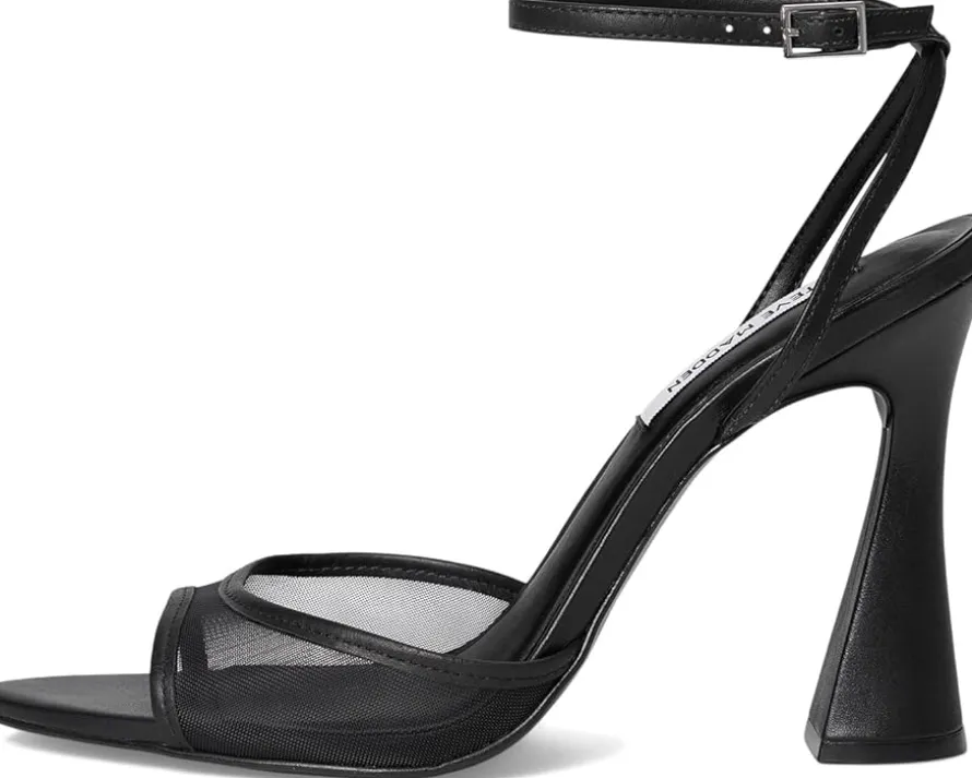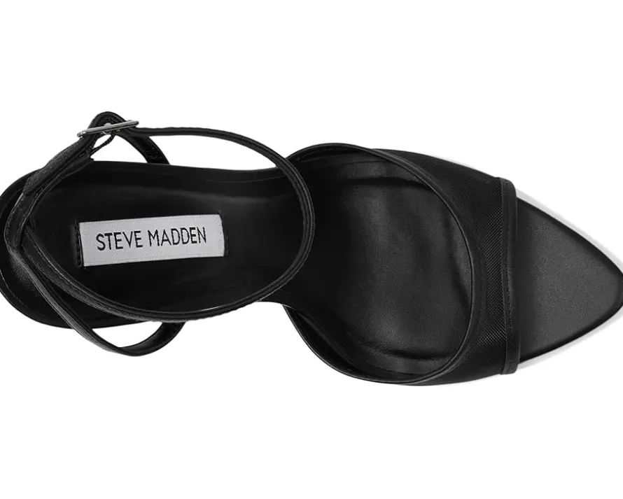 - Look glorious in the flawless beauty of the Steve Madden® Beki flared heel sandals, designed with an open toe and adjustable buckle detail running along a sleek ankle strap. Crafted from a leather upper, these shoes are the perfect match to your chic style.