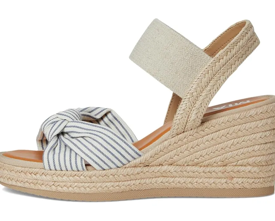 - The MIA™ Belinda sandals are the perfect complement to your favorite caftans. This wedge features an elastic band, rope and fabric stripped detailing with bow accent, open toe, and durable polyurethane outsoles. With its timeless nautical appeal, she’ll pair perfect with your beachy ensemble.