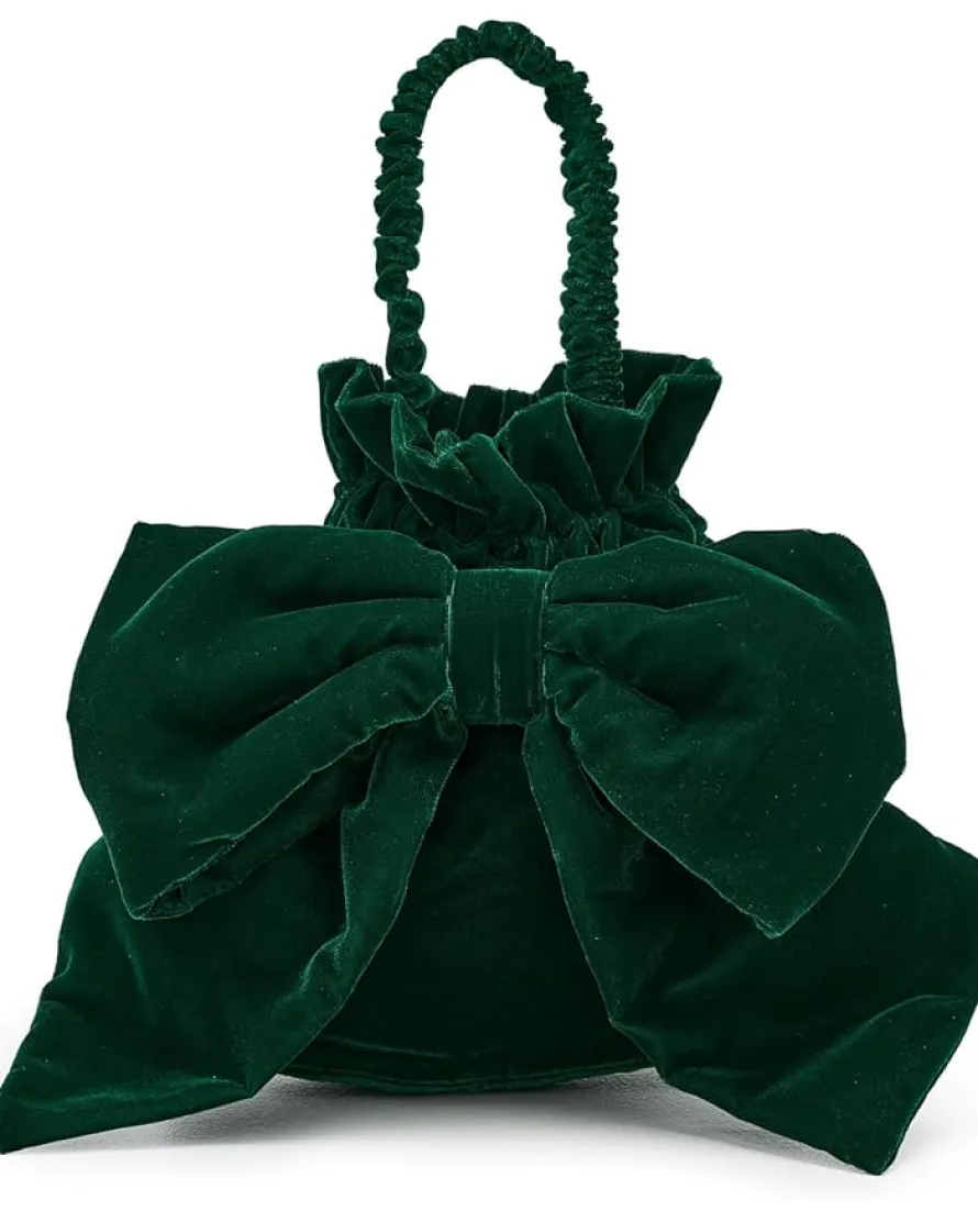 - Make a statement with the Free People™ Belle Velvet Bow Bag. Crafted from a soft velvet fabrication, this bag offers an unstructured pouch-style, oversized bow applique, smocked elasticated handle, an interior slip pocket, and a detachable strap.
