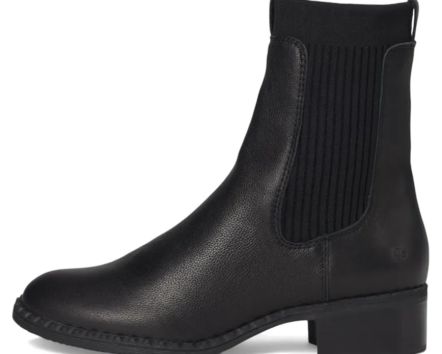 - The Gentle Souls® by Kenneth Cole Bernadette ankle boot is a refined Chelsea silhouette designed for effortless comfort and everyday polish. Crafted from leather upper, it features rib-knit insets that offer flexible ease and a snug fit, along with pull tabs at the front and heel for easy wear. A stacked block heel adds subtle lift, while the multilayered PORON® cushioned footbed with memory foam padding and arch support ensures plush comfort throughout the day. Finished with a rubber outsole for traction and durability, this boot blends modern style with Gentle Souls’ signature ergonomic design.