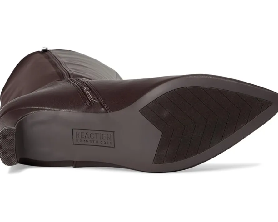 - Designed to flatter every curve, the Kenneth Cole Reaction® Berry boots pair a pointed toe design with a sculpted silhouette that rises to the knee. Its smooth front and elastic knit back mold effortlessly to your leg for a custom-like fit. These heeled boots are made of a polyurethane upper, foam insole, and leather lining. Their zippered side closure ensures easy wear. Equal parts tailored and modern, these knee-high heeled boots move with you – delivering streamlined sophistication from day to night.