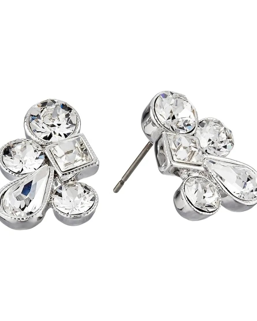 - Stud earrings feature an faceted crystal cluster.