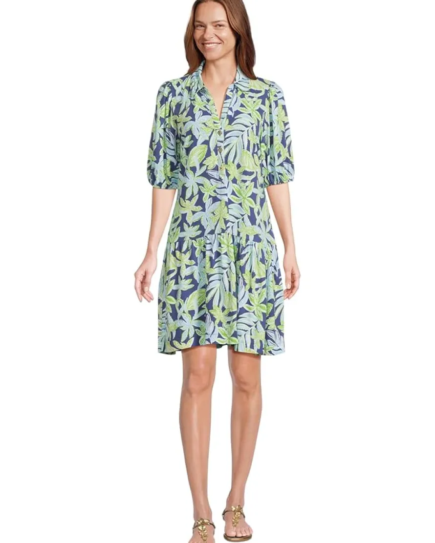 - The Lilly Pulitzer® Bingley Dress is an easy-fit, popover shirtdress with a collar, half placket with gold buttons, elbow-length sleeves, and tall ruffle at the hem. The cotton fabric of the dress takes your comfort to the next level. Featuring an allover floral print, this printed dress works for different occasions.