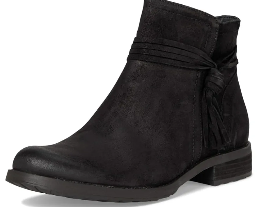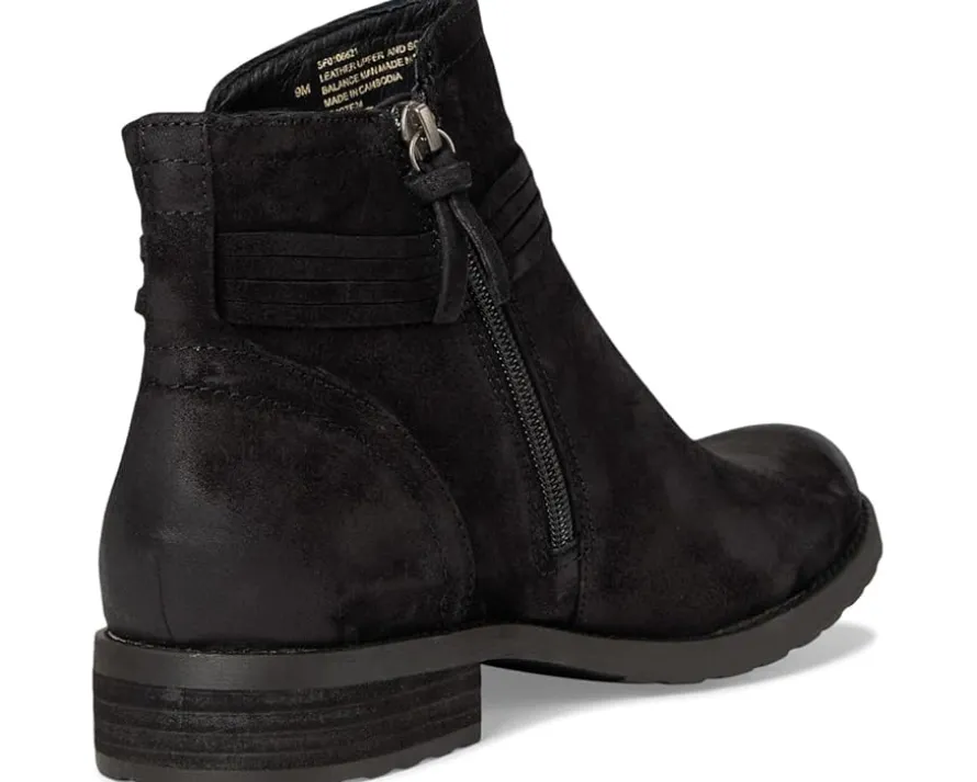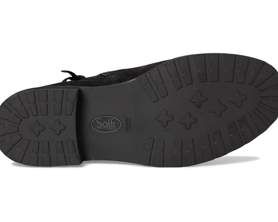 - Discover modern western flair with the effortlessly chic Sofft® Blake bootie! Designed with a western-influenced silhouette, this ankle-high essential brings rugged charm and everyday versatility to your wardrobe. Crafted with a premium waterproof suede and leather upper, it ensures style that stands up to the elements, while the supple leather lining adds all-day comfort. The round toe keeps the look classic, while the sturdy block heel offers a confident lift without sacrificing stability. An inside zippered closure makes slipping in and out a breeze, while the flexible rubber outsole and cushioned EVA insole provide superior comfort and traction with every step.