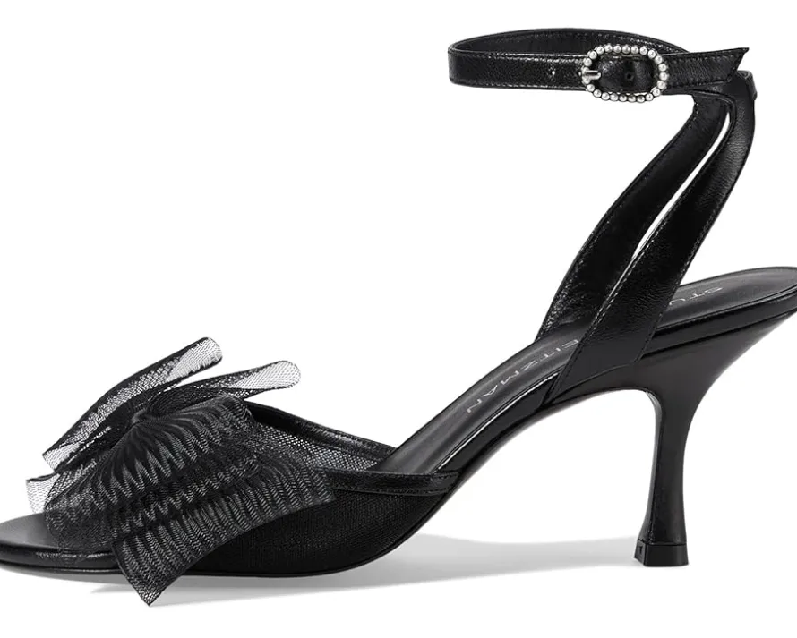 - Luxe layered bow exudes the charming beauty of the Stuart Weitzman® Blushing Bow 75 San. The sandal features nylon upper with buckle adjustable ankle strap closure and stiletto heel for added lift.