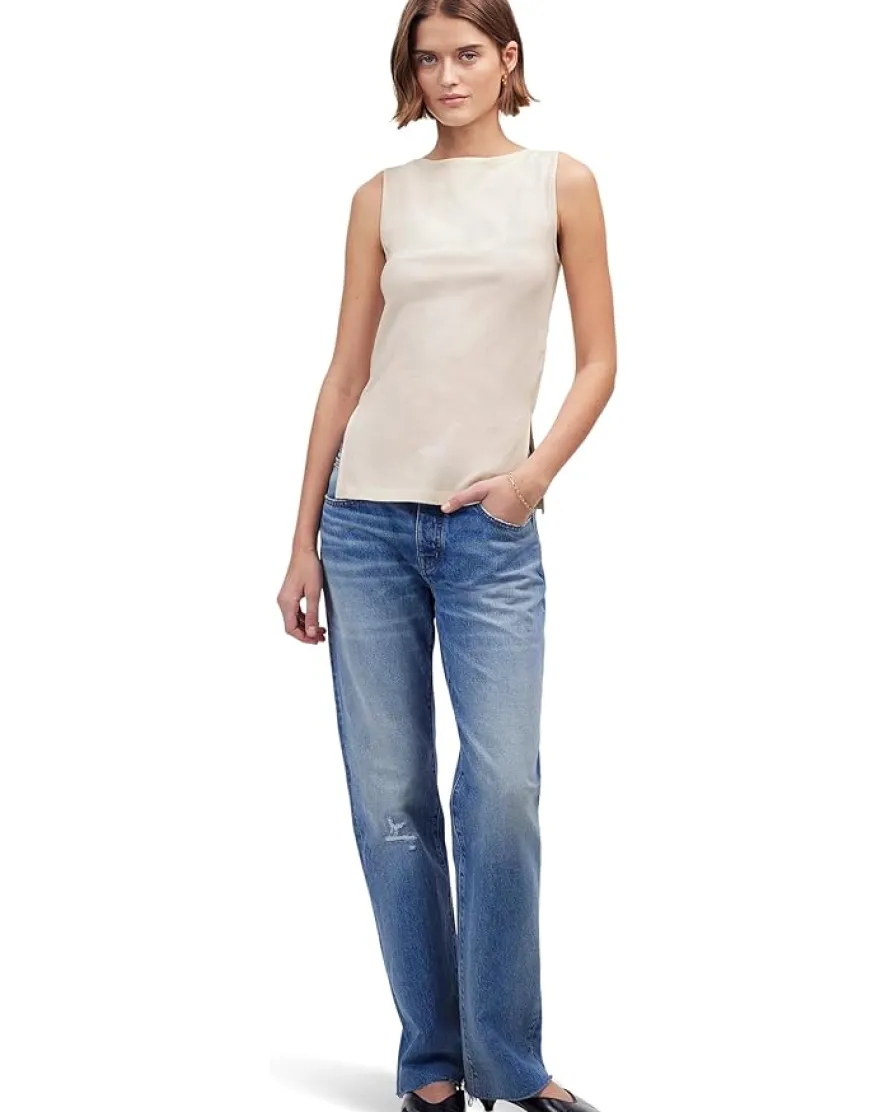 - Redefine modern elegance with chic flair wearing the Madewell® Boat Neck Slit Tank. It features a boat neckline, sleeveless design, and side slits for added ease of movement.