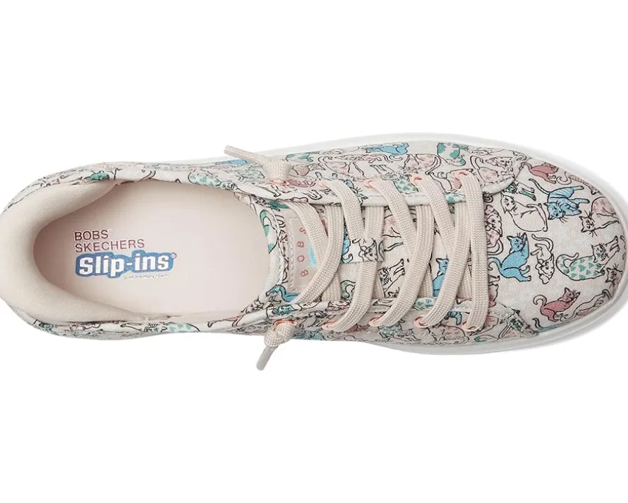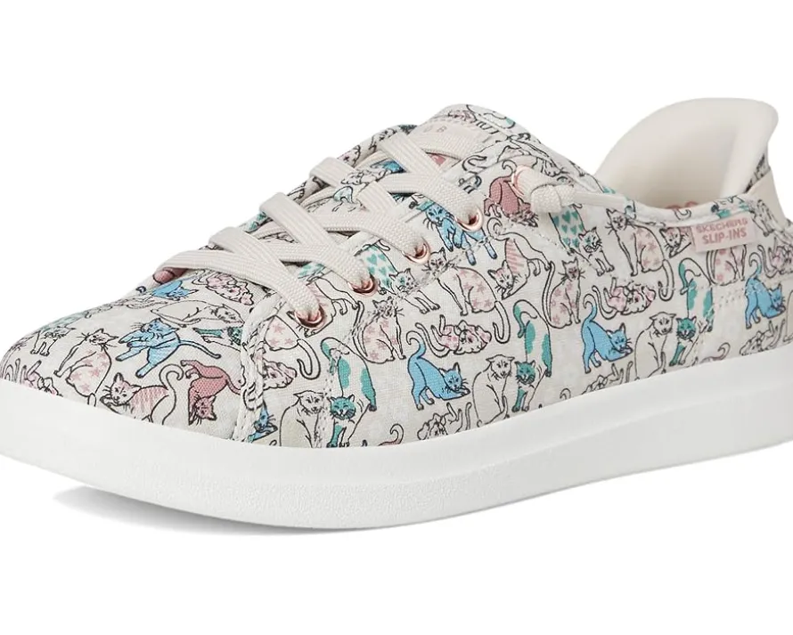 - Slip into blissful comfort and style choosing the BOBS from SKECHERS® Bobs D’Vine Hands Free Slip-ins. Crafted from canvas upper with allover ‘Pattern Kitty’ print and tied-off deco laces. The plush Skechers Memory Foam™ cushioned comfort insole and Exclusive Heel Pillow™ technology hold your foot securely and provide cloud-like comfort.