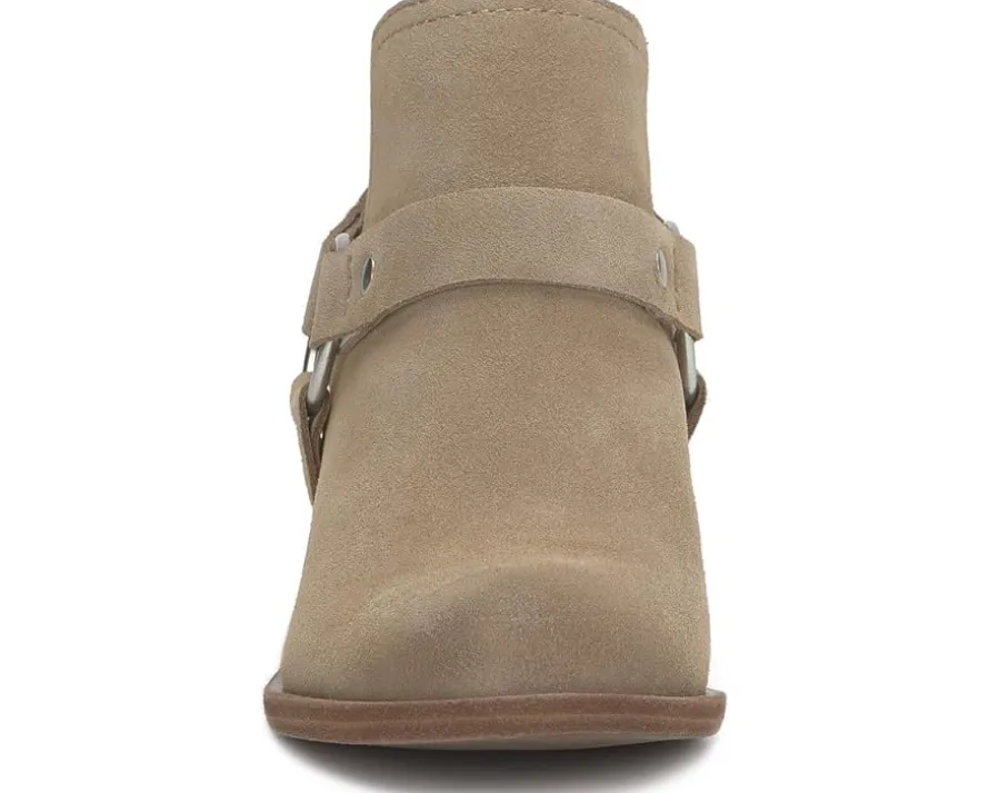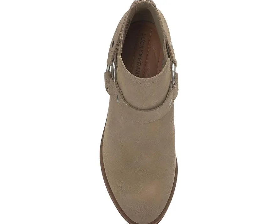 - Some western flare is added to the Lucky Brand® Boltin boots. Featuring the classic rounded toe silhouette and wearable block heels, these heeled boots also sport a sleek harness for some added styling. The leather upper, EVA insole, and polyester lining provide superior comfort and durability. These ankle boots are perfect to style up your outfits.