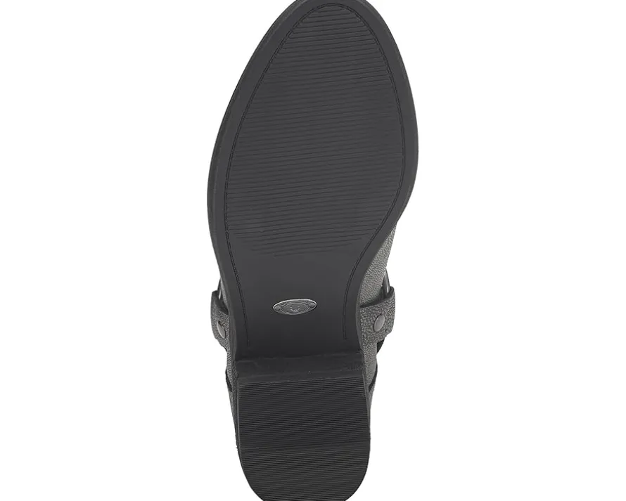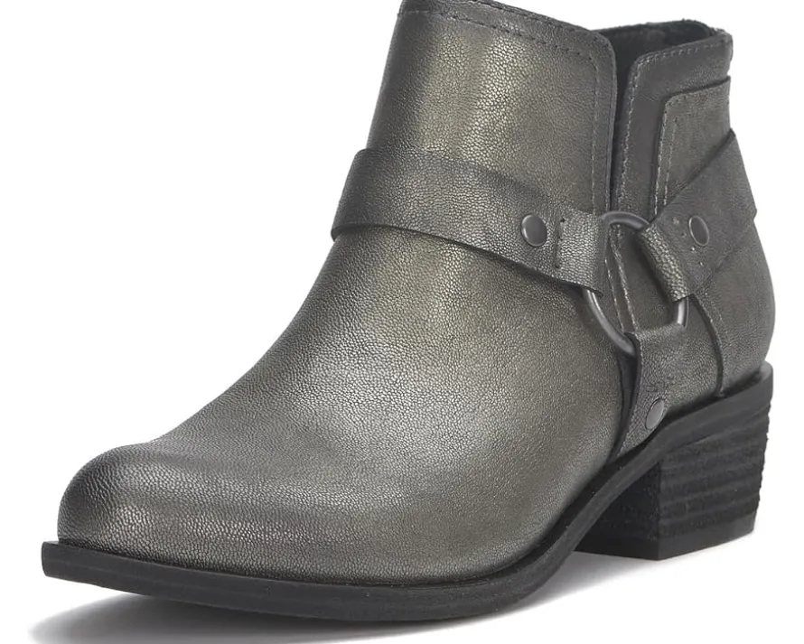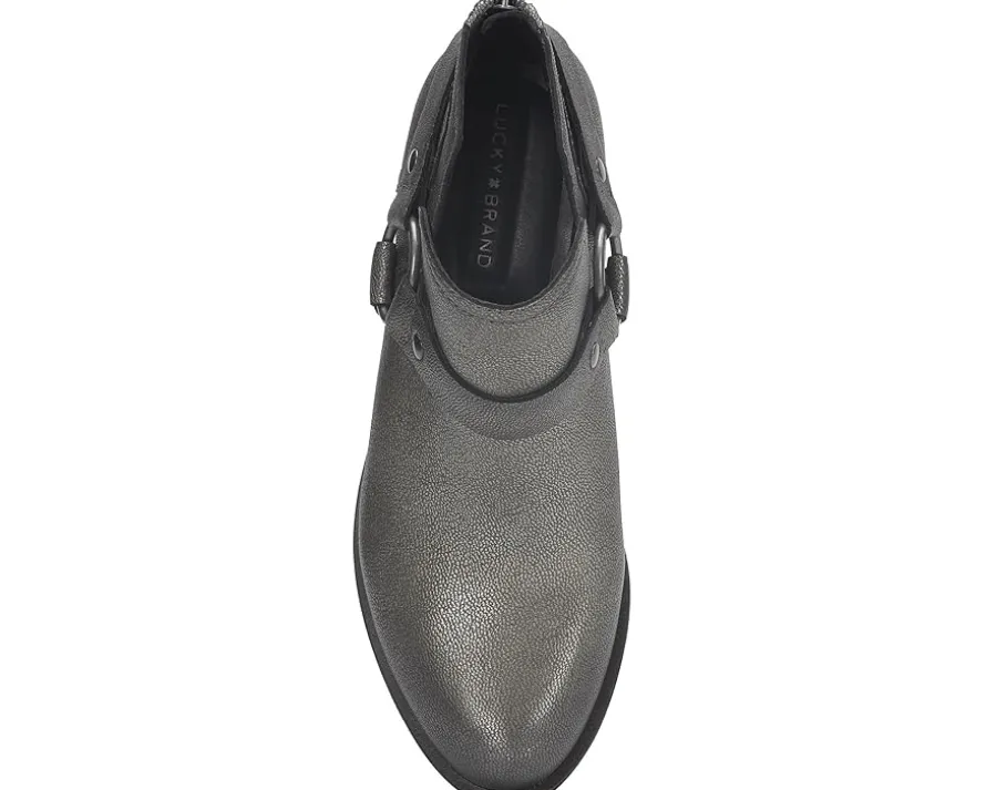 - Some western flare is added to the Lucky Brand® Boltin boots. Featuring the classic rounded toe silhouette and wearable block heels, these heeled boots also sport a sleek harness for some added styling. The leather upper, EVA insole, and polyester lining provide superior comfort and durability. These ankle boots are perfect to style up your outfits.