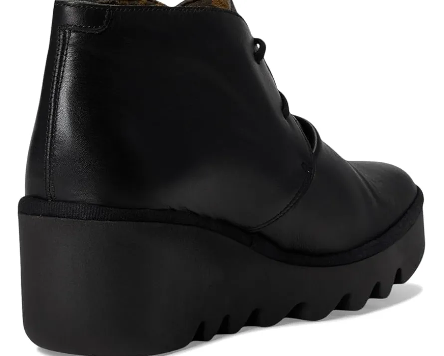 - The FLY LONDON® Brak593fly boots feature a rubber outsole that has a serrated look on wedge heels that are lightweight and flexible. Their suede upper is styled with a round toe design and soft microfiber lining to give these boots a luxurious look and feel. They are made of a cushioned foam insole and polyester lining. Waterproof and durable, these lace-up ankle-high boots are perfect to pair with different outfits and styles.