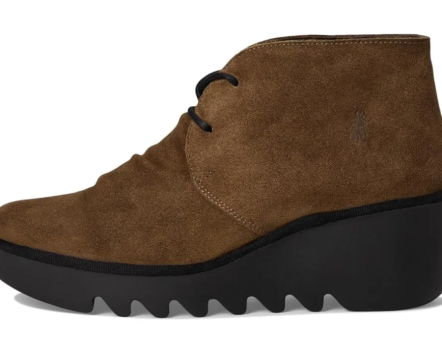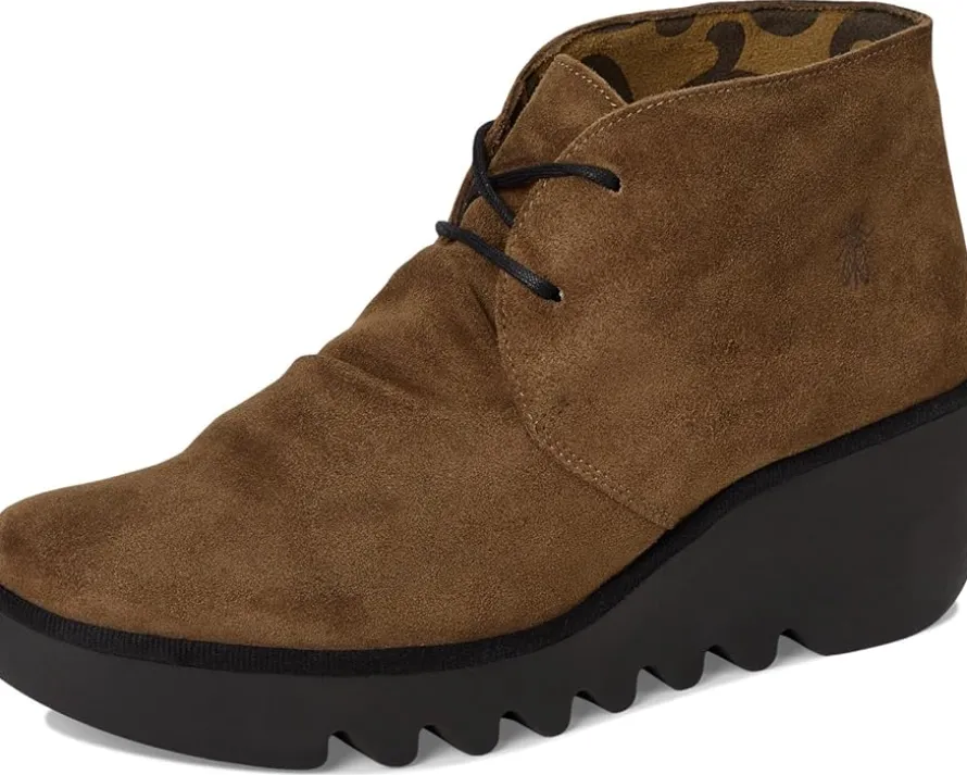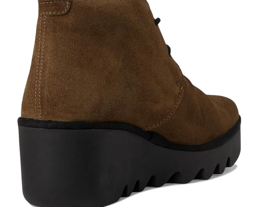 - The FLY LONDON® Brak593fly boots feature a rubber outsole that has a serrated look on wedge heels that are lightweight and flexible. Their suede upper is styled with a round toe design and soft microfiber lining to give these boots a luxurious look and feel. They are made of a cushioned foam insole and polyester lining. Waterproof and durable, these lace-up ankle-high boots are perfect to pair with different outfits and styles.