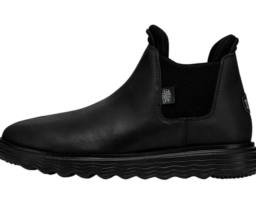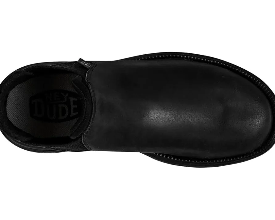 - Flaunt an authentic trailblazer style with superior comfort wearing the Hey Dude® Branson Craft Leather Boots. This pull-on footwear features side elasticized goring with leather upper construction and round toe silhouette.