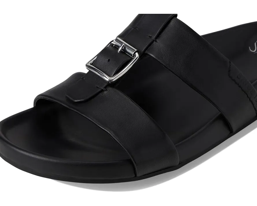 - Buckle up to add the perfect amount of attitude to any ensemble choosing the Franco Sarto® Braxton Slides. Crafted with leather or suede upper, faux leather lining, and EVA insole. The slip-on style is adorned with metallic buckle detailing and square toe design.