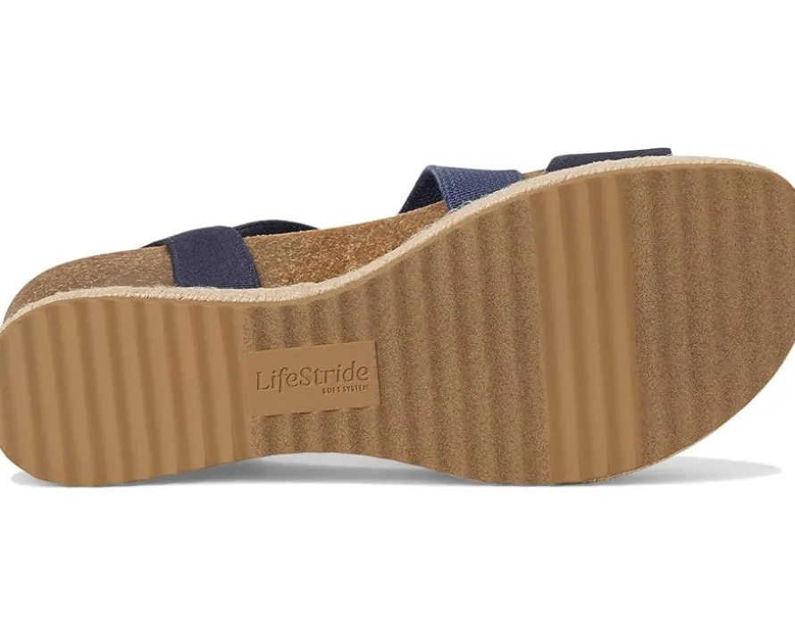 - Getting dressed and looking cute is a breeze in the LifeStride® Breeze Sandals with built-in stretch and espadrille detailing. The faux leather or fabric upper with stretch gore straps allows extra flexibility. The partially recycled polyurethane lining and foam insole with Trusted Soft System® comfort technology also adds unmatched cushion, support, and flexibility. The open round-toe sandals come in an easy slip-on fit with jute-wrapped espadrille wedge heel.