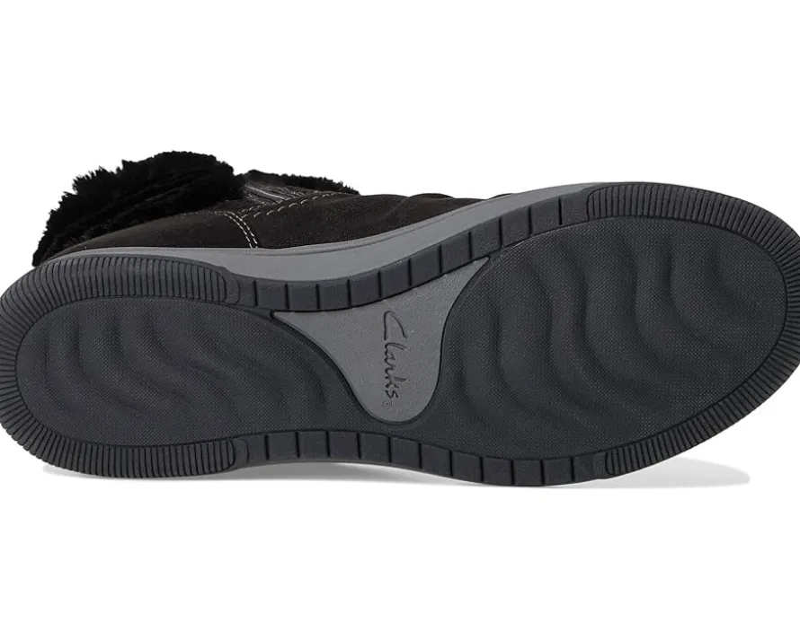 - Keep your feet warm and comfortable by wearing the Clarks™ Breeze Cozy Boots. The ankle-high boots come with a synthetic upper, insulating faux fur lining, and a removable Cushion Soft™ footbed that delivers customizable, targeted support. The easy slip-on style with lace-up details at the back allows a secure fit.