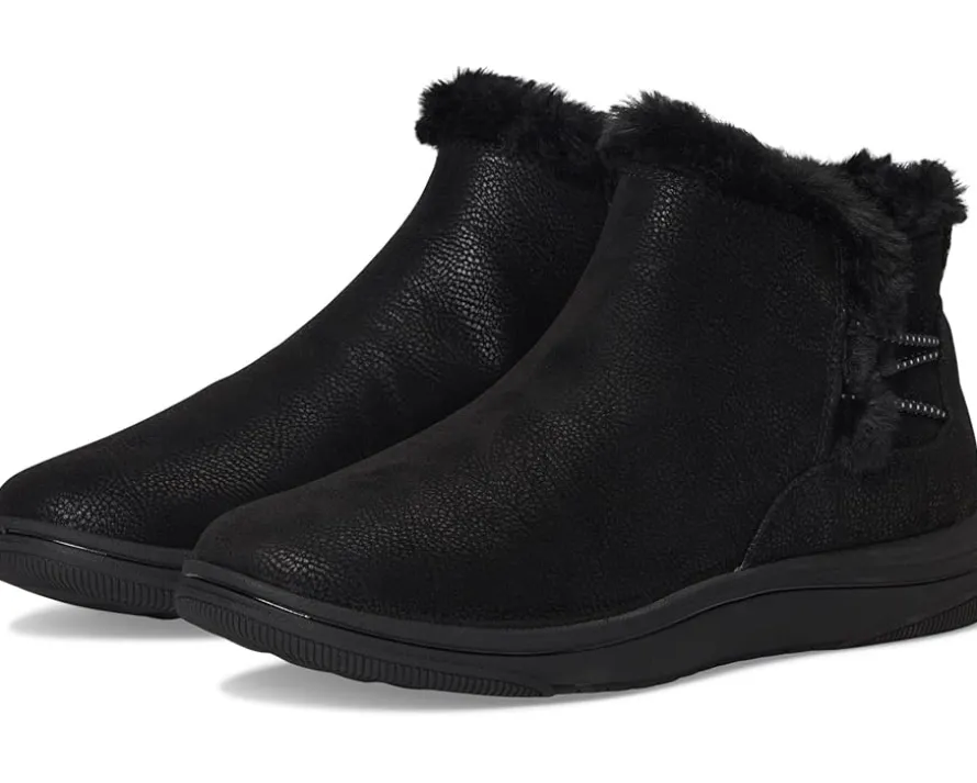 - The next best thing to slippers, Clarks™ Breeze Fur boot is back with a winter-ready twist. Toes stay toasty thanks to faux-fur linings, while the removable Cushion Softfoam™ footbed delivers shock absorption and comfort where you need it most. When you’re finally ready to part with them, a bungee lace and heel pull make them easy to pop off.