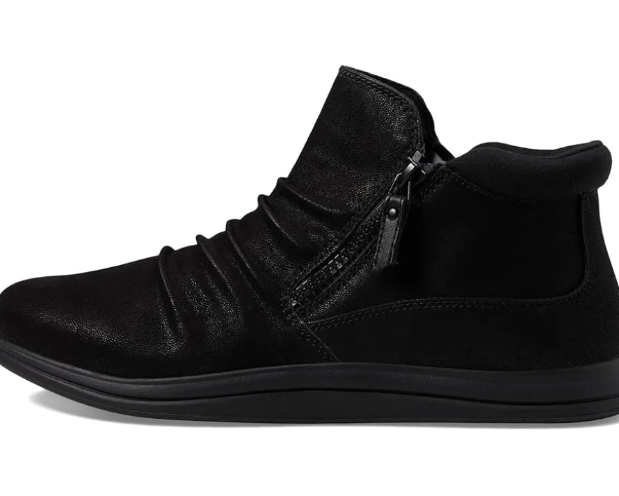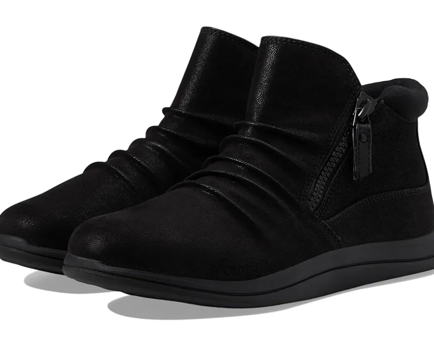 - Sleek and slouchy, the Clarks™ Breeze Range Boots are exclusively designed to give an instant boost to your street or dressy style without letting you give up comfort. The shoes feature an ankle-high silhouette with a closed round toe and are secured with a zippered closure for easy on and off. The synthetic upper displays a ruched detailing for added style while the Cushion Soft™ technology on the foam footbed ensures comfort with every step.