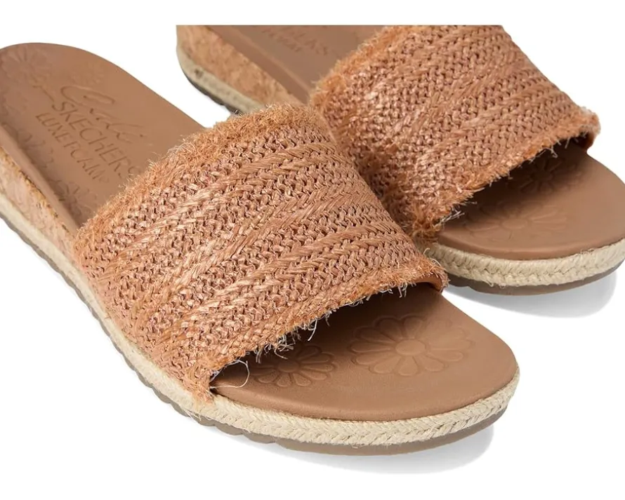 - Summery style and absolute comfort combine in the SKECHERS® Breezie – Radiant Feels. This vegan slide sandal features a frayed edge raffia slide, cork veneer midsole with jute trim, and a cushioned Luxe Foam® footbed.