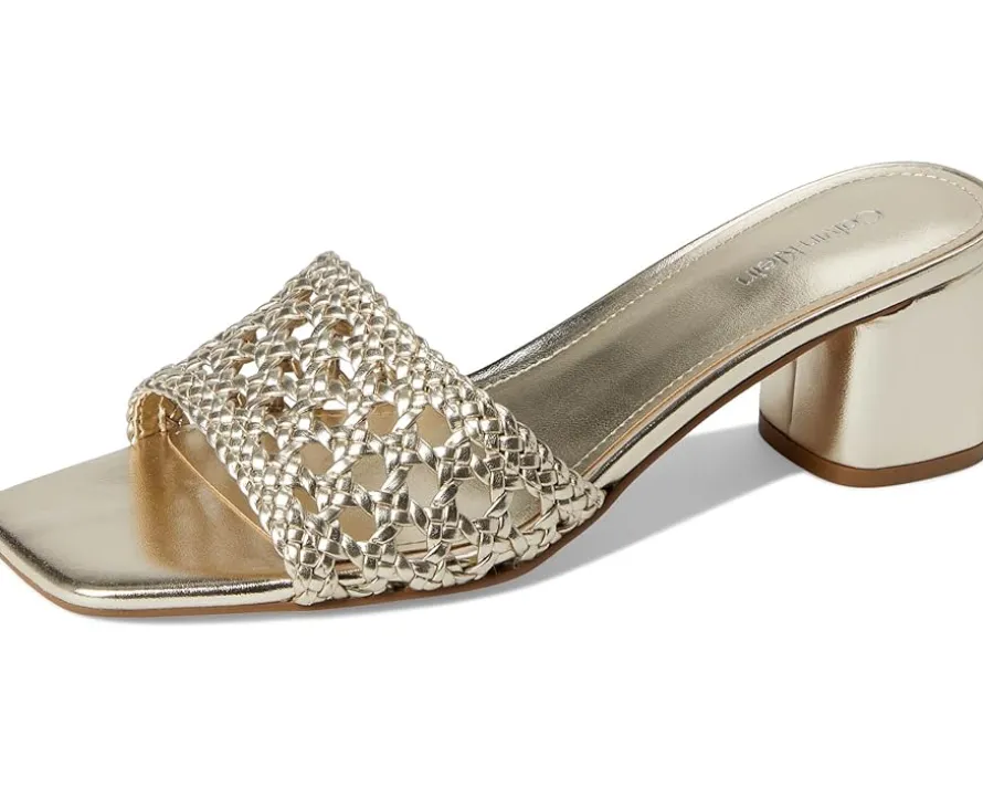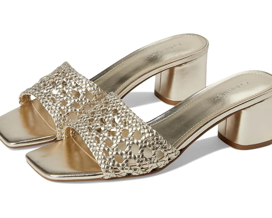 - A study in chic, Calvin Klein® Brianny dress sandals. Designed with a luxe faux leather upper and lining, these sandals exude sleek refinement. The woven detailing adds a touch of texture, while the modern square toe keeps your style on point. A sturdy mid block heel provides all-day comfort and stability, making them the perfect companion for any occasion. Finished with a durable synthetic rubber outsole, they blend fashion with function seamlessly.